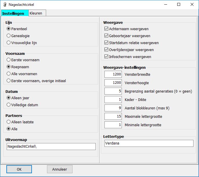 dialoogvenster wordt opgegeven (standaard-waarde NageslachtCirkel):